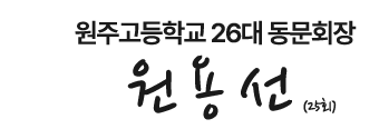 “스스로, 더불어, 알차게”의 교훈 아래 원주고등학교를 졸업한 우리 모두는 원주고등학교총동문회의 운명적인 가족입니다.